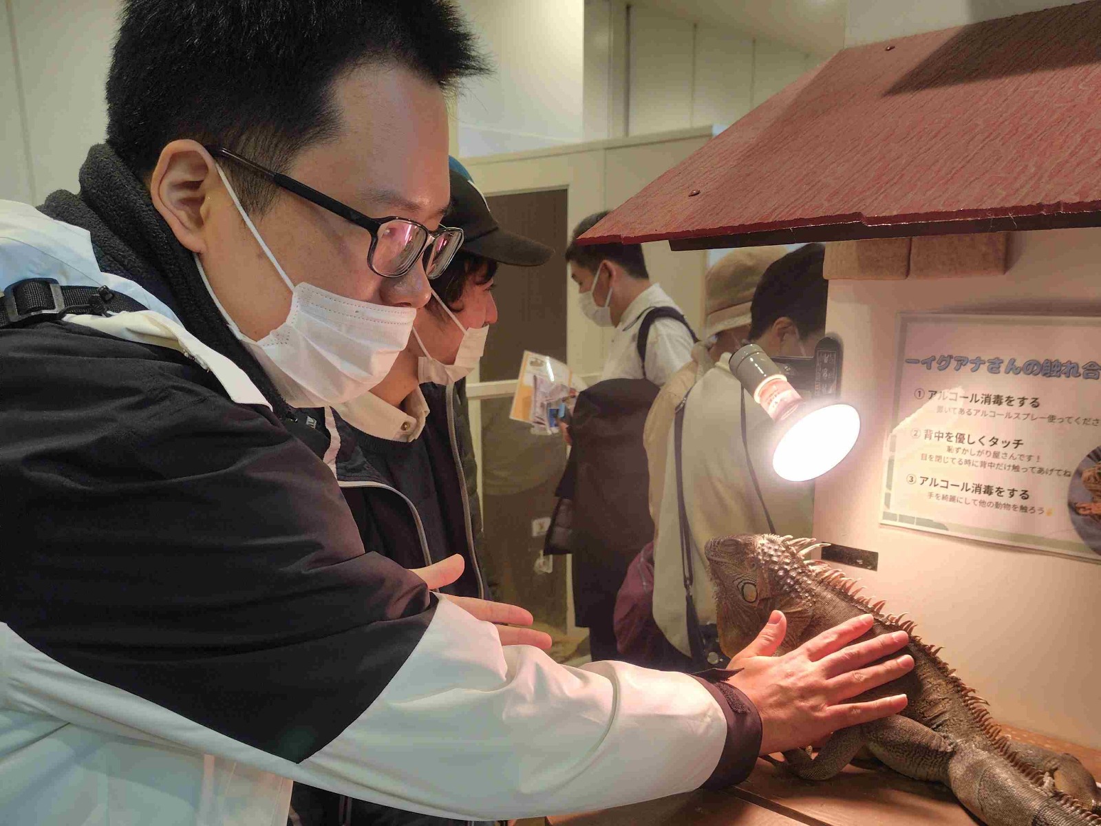 運河パーク駅で下車後は、「アニタッチみなとみらい」へ。ミーアキャットやグリーンイグアナ、シロフクロウなど、普段なかなか出会えない動物たちとふれあい、参加者の皆さんは目を輝かせていました。特にグリーンイグアナに触れるときは、ちょっぴり緊張しながらも楽しそうな様子が印象的でした。
